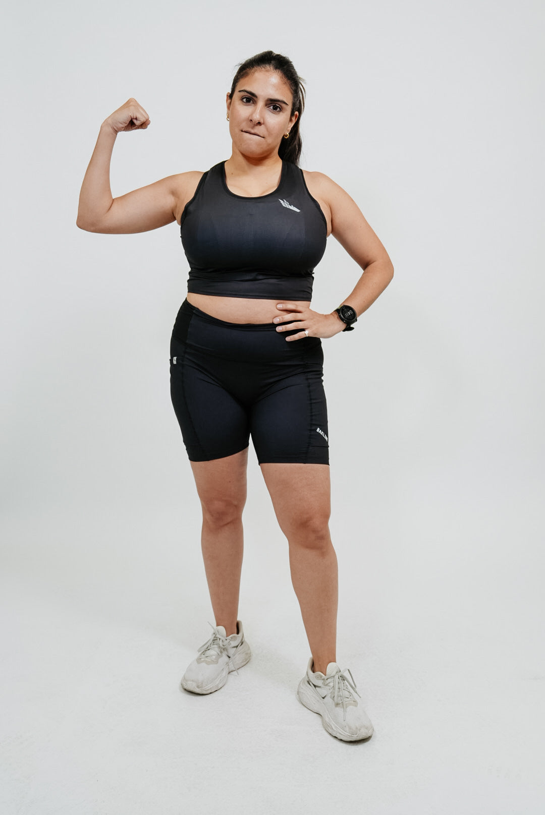 Sunny is 5' 4", 122 lbs, 32B, and wearing a Small with the 3.5" inseam